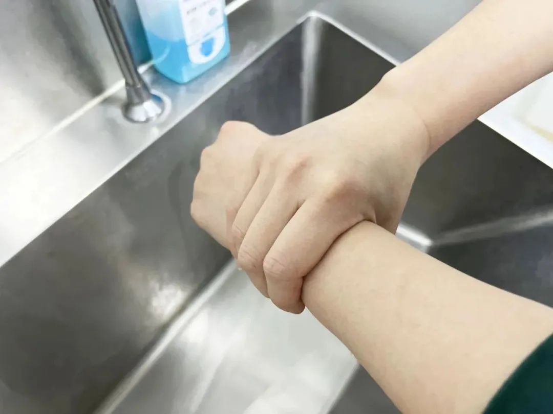 雙手交替清洗手腕。