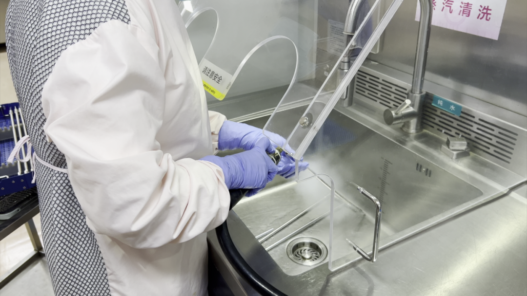 密閉式集中回收的醫療器械,由消毒供應中心人員在去污區進行清洗預處理。